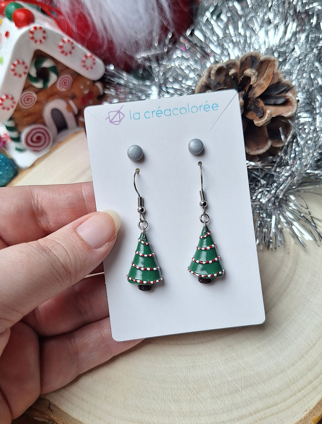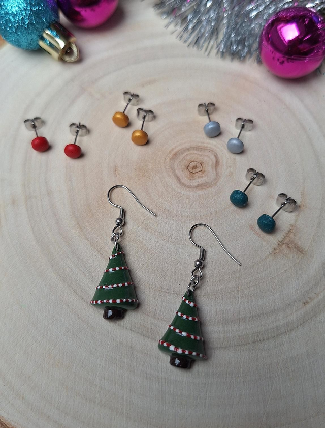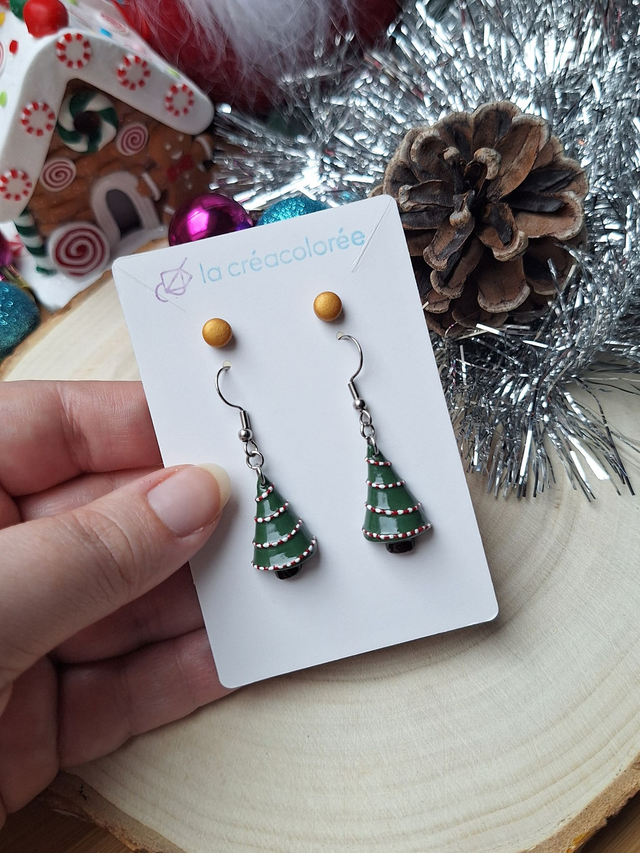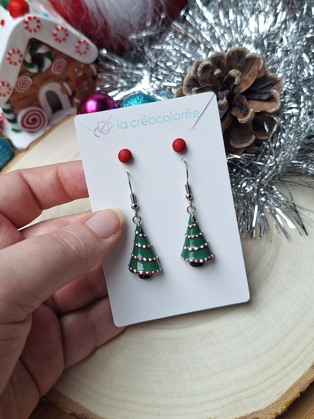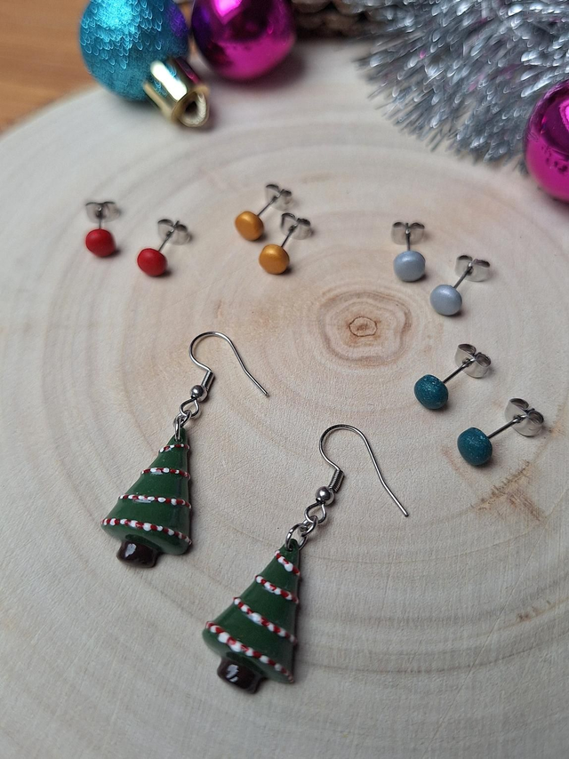 Ta paire de Sapins est livrée avec une paire de puces assorties (6 mm) au choix : rouge, vert, doré ou argenté.