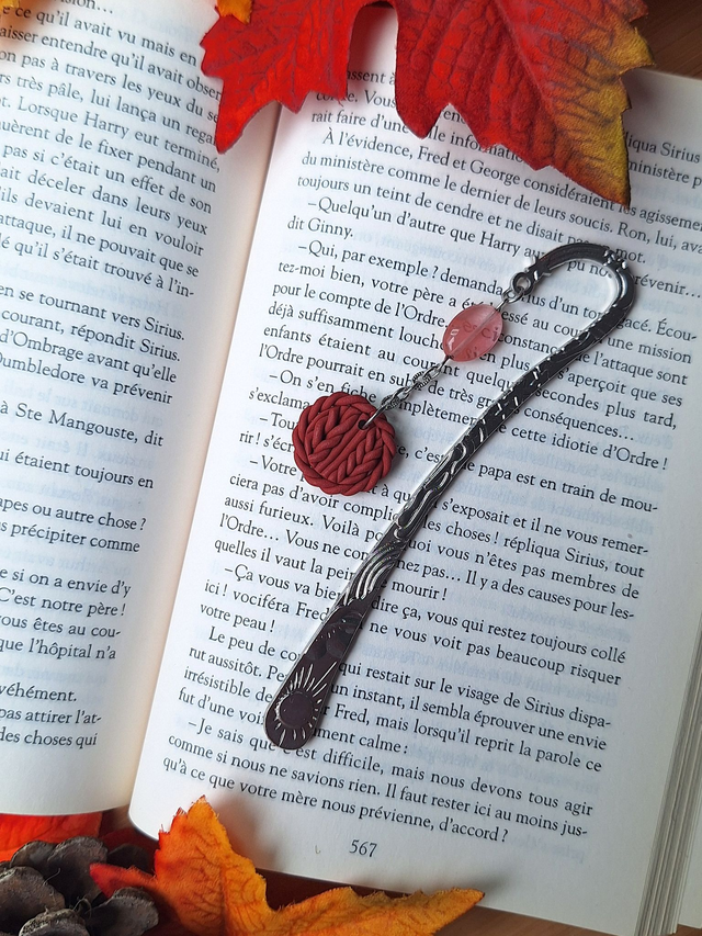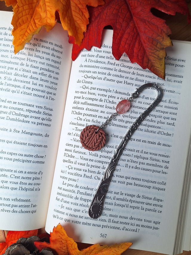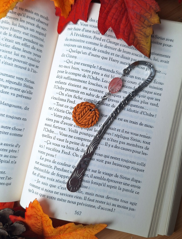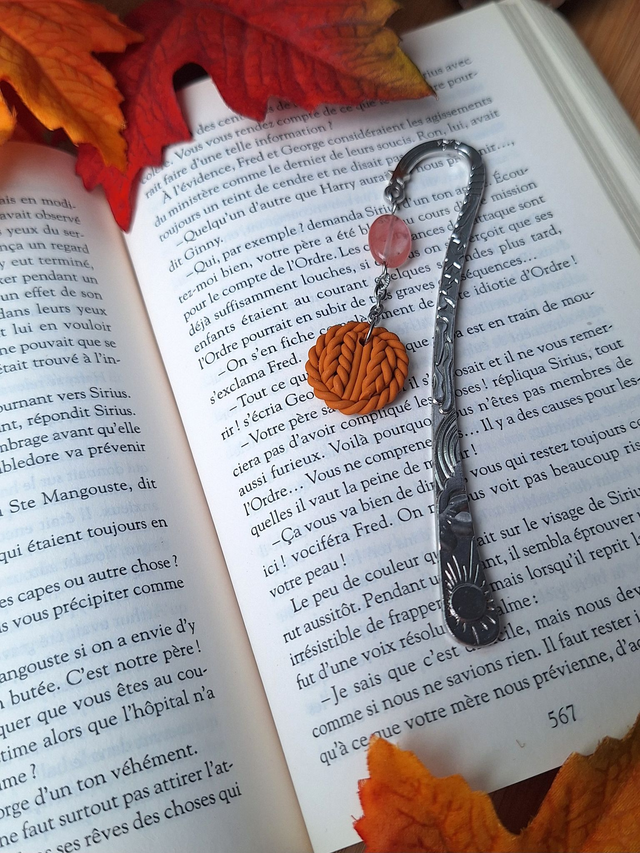 Ajoute une touche automnale à tes moments de lecture avec ce marque page bijou. Son pendentif, façonné a la main en pâte polymère représentant la douceur d'un pull douillet apporte une note de douceur et de réconfort à tes livres préférés 📚 Chaque couleur a été soigneusement élaborée, offrant une palette unique.